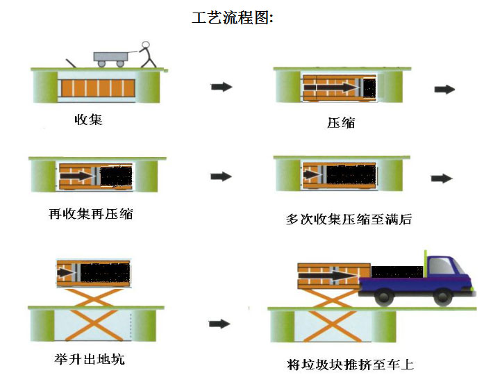 ◇垃圾儲存、壓縮及寄存全部在地面以下,地面上沒有垃圾散落,對環境影響較小,環保性好;垃圾壓縮后密度高,水份少,可避免汽車運輸中的垃圾散落、污水滴漏現象,避免二次污染;